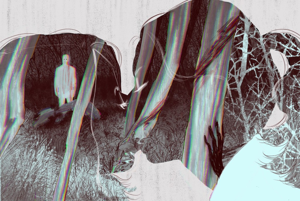 looks like you have a ghost hovering over your shoulder. why not give them a spooky story to read?